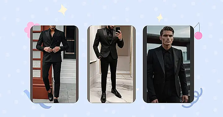 This guy is rocking a suit so sharp it could cut butter! It’s all black, from his shoes to his slicked-back hair, making him look like a secret agent ready to save the world. He’s got the confidence of a superhero and the style of a movie star. You just know this dude is about to make a grand entrance, leaving everyone in awe of his amazing style!