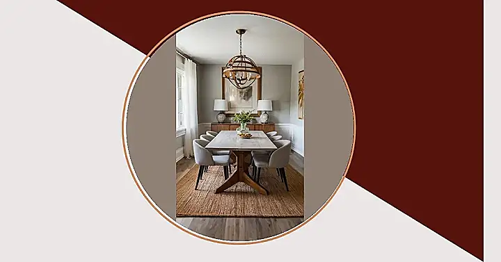 Now, let’s talk about that chandelier – it’s like a fancy birthday cake candle holder, but for the whole room! It adds a touch of “look at me, I’m sophisticated!” without being stuffy. Plus, the artwork in the back adds some color and completes the space to create the perfect balance. It’s proof that dining room decor can be both elegant and super welcoming at the same time.