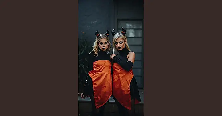 These two friends are rocking their last-minute Halloween costumes – and they look absolutely fabulous! They found a clever way to make a simple outfit look totally spooky. All they needed was a little bit of black clothing, some orange fabric, and some devil horns. See? It’s not always about the fancy costumes – a little creativity and a lot of confidence can go a long way!