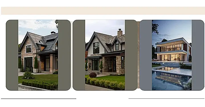 This house is so fancy; it’s practically wearing a tuxedo! Look at those curves and the amazing balcony – perfect for practicing your dramatic Shakespearean monologues or just chilling with friends while pretending you’re rich and famous. The stacked stone look adds a touch of “ancient castle” even though it’s clearly brand new. It’s like they took inspiration from a superhero’s lair but made it comfy enough to actually live in.