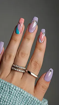 Plus, the cool geometric designs and the little sparkly bits? Super stylish! These nails are perfect for anything from hitting up the mall with your friends to that slightly awkward family barbecue. Just imagine rocking these while sipping lemonade. These spring nail colors are a total win, so go ahead and get your spring on, one finger at a time!