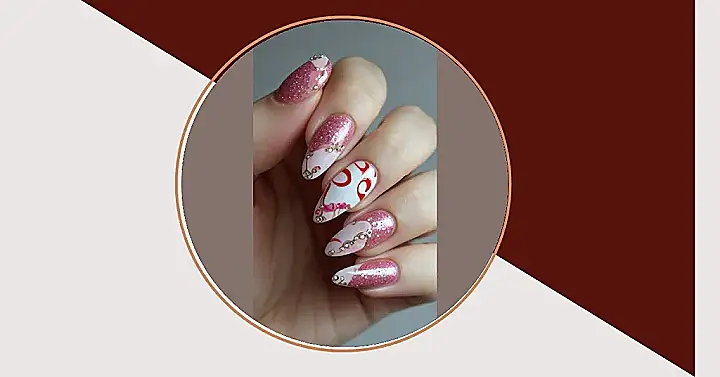 And check out that super-sweet pink and white color combo! It’s like a strawberry milkshake meets a cloud, resulting in the cutest manicure ever. The V-shape at the tip adds a little bit of edge to all the sweetness and sparkle. Trying this design at home? Maybe practice your steady hand first, or bribe your most artistic friend with pizza for a nail-painting session!