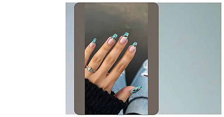 These nails are totally giving us “beach vibes,” even if it’s a little chilly outside. The turquoise and white swirl design looks like a cool ocean wave, making us want to dive right in. The brown and black accents are like the sandy shore, ready for us to build a sandcastle or maybe even a little mermaid tail! These nails are so pretty and perfect for a day at the beach.