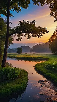 This photo is what happens when nature decides to get its Instagram on. I mean, look at that light! It’s like the sun is trying out for a role in a romantic movie, casting a golden glow over everything. And that misty field? It’s practically begging for a dramatic slow-motion walk while your favorite emotional song plays in the background. Bet you can almost smell the fresh air, minus any awkward gym smells, of course.