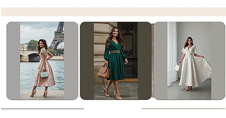 This outfit is more than just a dress; it’s a whole mood! You could wear it to a fancy dinner, a museum visit, or even just hanging out with friends at a cute café. Plus, the bag and shoes totally match the classy, Parisian style. It’s like the ultimate “I woke up like this… fabulous” look, but actually planned out really well!