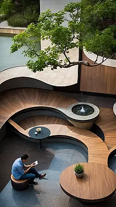 Check out those funky, curvy shapes and the sneaky cool lighting glowing from underneath! That’s part of the magic of urban landscape design – it’s not just straight lines and predictable bushes. They add these cool curves and lights that make the place look awesome, especially when the sun goes down. It’s like they’re setting up a secret level in a video game, but in real life, with plants instead of power-ups. These spots are designed to make the city feel less like a rush-hour traffic jam and more like your own personal chill zone, perfect for scrolling through TikTok or just pretending you’re a sophisticated grown-up for five minutes.