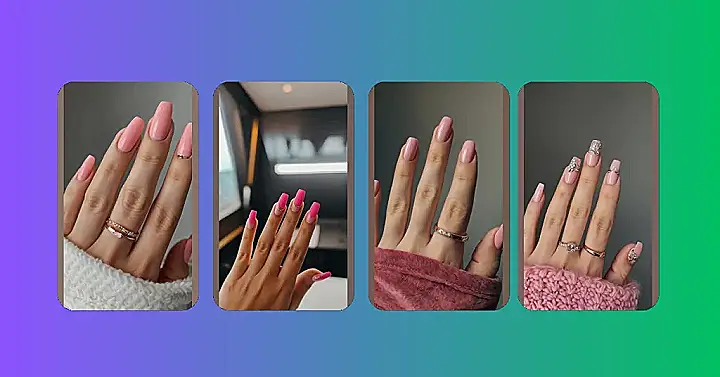 The picture shows some pretty awesome nails! The pink ombre effect is so cute and perfect for fall. It’s like a sunset on your fingertips! But what really steals the show is the ring collection. This person has got their finger game on point, with multiple dainty rings and a sparkly one that looks like a cute little butterfly. I mean, come on, how could you resist wanting to try out different rings with such stylish nails? It’s almost as if the nails and the rings were made for each other!