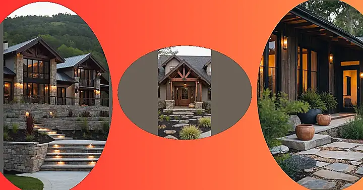 Stepping up to this cool ranch house feels like an adventure, thanks to those fun stepping stones sprinkled across the yard. They’re perfectly spaced for practicing your best rock-hopping moves or maybe just pretending the dark mulch is a river of chocolate. The way the wood and stone come together makes the whole place feel super grounded and natural, even if the only animals you see are squirrels plotting to steal that pumpkin. It’s definitely the kind of spot that screams “kick back, relax, and enjoy the view!”