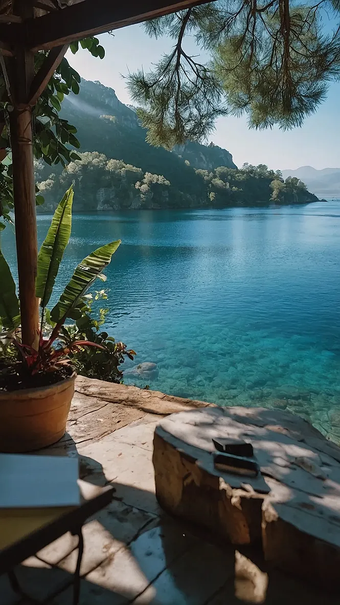 This picture makes me want to grab a good book, put on my sunglasses, and just relax. Can you imagine waking up to this view every day? It’s like a scene from a dream – the clear, sparkling water, the lush green mountains in the distance, and that beautiful, peaceful sky. The only thing missing is a refreshing cup of coffee! I’m sure this is the kind of place where you could just sit for hours and enjoy the beauty of nature, totally forgetting about all your worries.