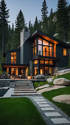 This house is like something out of a magazine! It’s all sleek and stylish, with big windows that let in tons of light and make you feel like you’re right in the middle of the forest. Imagine waking up to a view like that every morning! This home is so cool, it even has a swimming pool, which is perfect for cooling off after a day of hiking or exploring the mountains.