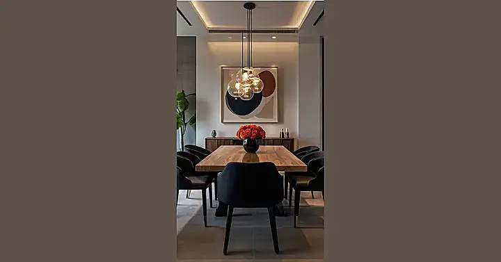 Imagine having dinner in a room that looks like it came straight out of a magazine – but without hiring a fancy designer and spending all your allowance money! The secret is in the details. Check out the lighting! It’s like a modern art piece decided to hang out above the table. And those chairs? They’re practically begging you to sit down and gossip with your friends.