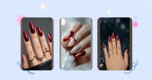 Look at these nails! They’re like tiny, sparkling jewels on your fingertips, showing off that deep, gorgeous berry colour with just the right amount of glitter shimmer. They instantly make you feel fancy, like you could be walking a runway or just totally owning that math test. The best part is, they look super sophisticated and put-together without looking like you tried too hard. It’s the perfect way to add a little sparkle and class to your look without spending hours on complicated designs that smudge right when you’re done.