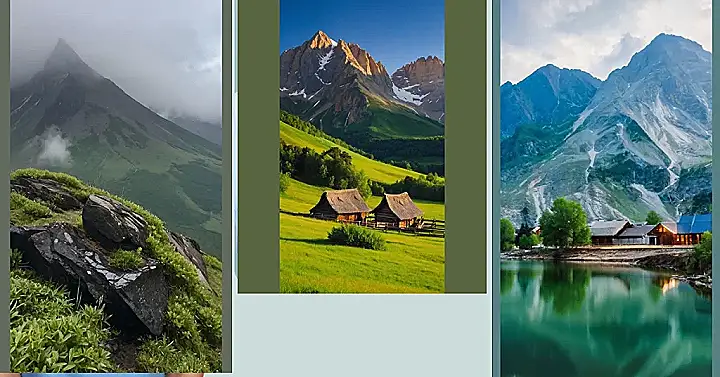This picture is a real-life postcard! Imagine waking up to these gorgeous mountains every day. Those mountains are so tall, they probably have their own weather. They look like they’re wearing fluffy hats of snow, which might be a bit chilly for a morning walk. But with those two little houses at the bottom, it’s clear that someone’s found a way to make these mountains their home. Maybe they have a super cozy fireplace and hot chocolate waiting for them after a day of exploring the snowy peaks.