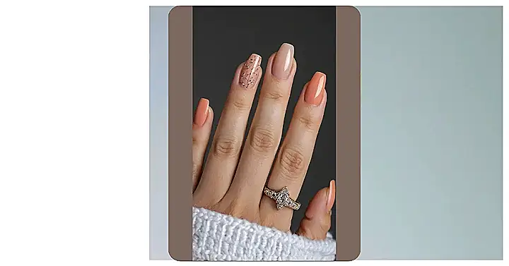 These nails are basically saying, “I’m effortlessly cool, and I definitely have my life together…or at least my nails do!” They’re the ideal canvas for showing off those gorgeous rings (hello, sparkly one!). Forget about stressing over clashing colors; this nude shade is like the ultimate peace treaty for your fingers. Now you can focus on more important things, like deciding which TikTok dance to learn next.