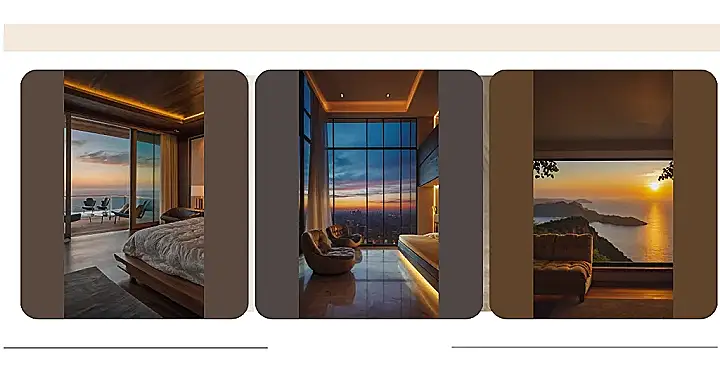 Imagine waking up in this dreamy bedroom, the sun peeking over the horizon and painting the sky in shades of orange and pink. You can almost feel the warm breeze coming through the giant windows, and it’s so peaceful you might think you’re in a spa instead of a bedroom! The bed looks super comfy, and you can’t beat those views!