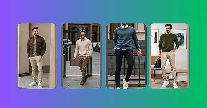 Want to look like you just stepped out of a magazine, but without trying too hard? This look is perfect for that! It’s like saying, “Hey, I’m stylish, but also super chill and ready to grab some pizza.” Ditch the sweatpants (sometimes!), and try some cool chinos or jeans, a comfy tee or sweater, and a jacket that screams “I’m awesome,” all while keeping it super comfy.