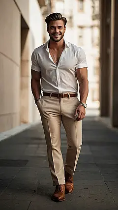 Want to look like you’re about to close a million-dollar deal, even if the only thing you’re closing is your locker? This dude’s nailed it! With his sharp shirt, fitted pants, and shiny shoes, he’s giving off serious “I know what I’m doing” vibes. You don’t need a fancy suit to look like you’re in charge; just a little bit of style magic, some confidence, and maybe a good hair day!