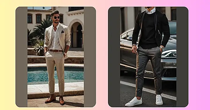 So, you know those times when wearing a full suit feels like you’re trying too hard, but just rocking up in your gym shorts is definitely not an option? That’s where smart casual swoops in like a style superhero! It’s basically telling the world, “Yeah, I cleaned up nice, but I’m still chill enough to hang out.” Look at this guy – he’s got a crisp shirt and nice trousers on, but then he pops on some fresh white sneakers. It’s like the fashion equivalent of mixing chocolate with peanut butter: unexpected, but totally works and makes you look awesome without feeling like you’re trapped in fancy clothes.
