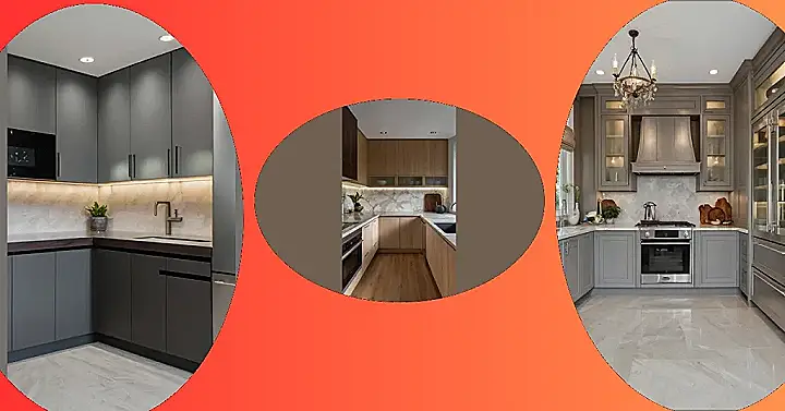 So, check out these cabinet styles! They’re like the jeans of the kitchen: everyone’s got ’em, but some are definitely cooler than others. These gray cabinets are trying to be fancy with their crown molding and glass doors, almost like they’re expecting royalty to pop in for a snack. I bet they hide all the good snacks behind those closed doors to keep the riffraff out.