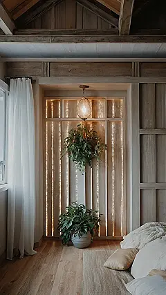 This room is a perfect example of how less can be more. The wood paneling and simple lighting create a cozy and inviting atmosphere. It’s like stepping into a peaceful retreat! The strategically placed plants add a touch of life and freshness, without being too overwhelming. Imagine waking up in this space, feeling calm and relaxed.