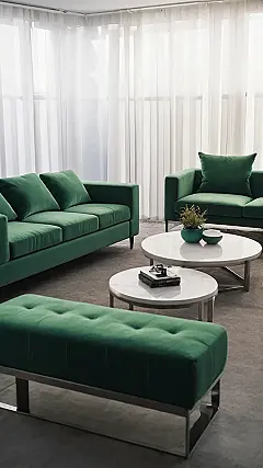 This living room is like a dream come true for anyone who loves to relax. Imagine sinking into that plush green sofa, surrounded by comfy pillows, and feeling the stress melt away. The light pouring through the curtains creates a calming vibe, perfect for reading a book, watching a movie, or just enjoying a cup of tea.