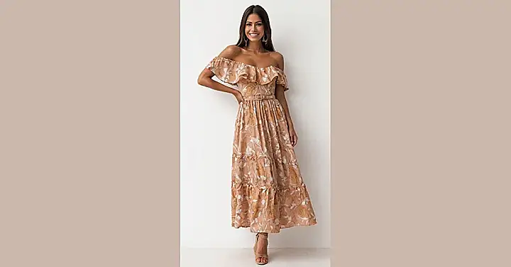 This maxi dress is giving us major fall vibes! The floral pattern is totally on-trend, and the long, flowing skirt is perfect for twirling in crisp autumn air. Imagine yourself walking through a park, leaves crunching under your feet, feeling like a total queen in this stunning dress.