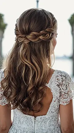 Check out this cool hairstyle with the braids! Looks super pretty, right? Now, imagine trying to survive an epic concert with just any old hair hanging loose. You’d spend half the time pulling it out of your mouth or having it stick to your sweaty neck. This braided half-up style is basically the superhero cape for your hair at a show, keeping all the top layers neatly tucked away while letting the rest flow. It’s like saying, “Yep, I came to dance, but my hair is not participating in the mosh pit drama.”
