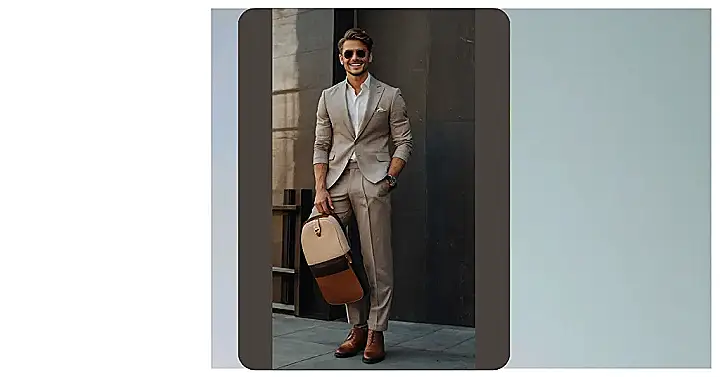 The cool part is, he’s not trying too hard. The open collar shirt and shades give him a relaxed vibe, like he just threw on a suit to grab a coffee. It’s a perfect example of how a “mens old classic outfit” can still look totally relevant and stylish today. Who knows, maybe you could pull this off for your next school presentation – talk about making an impression!