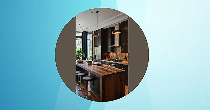 This kitchen is like the grown-up version of your dreams! It’s got sleek black cabinets that make you feel like a secret agent (or maybe just a really cool chef) and a massive island that’s perfect for hanging out with friends. The wooden countertop is so beautiful, it practically begs you to bake a delicious treat and then sit down with a glass of milk and enjoy it!