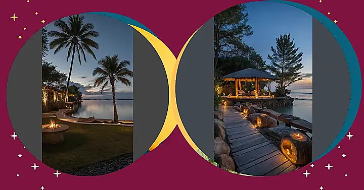 Imagine this: It’s twilight, and you’re walking along a stone path lit by flickering candles. The air is soft and cool, and the scent of flowers is carried on a gentle breeze. Palm trees sway in the distance, their leaves casting long shadows across the path. You feel a sense of peace wash over you, like a warm bath on a chilly day.