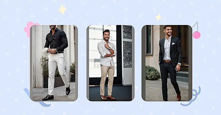 Looking sharp like the guy in this picture isn’t just for flexing at fancy events, though you totally could! Rocking a cool-colored shirt and smart pants like these is basically saying, “Yeah, I cleaned up nice.” It might feel a bit different from your usual everyday threads, maybe even a little weird, but sometimes dressing up is just part of the game – like putting on your best gear for a big match or a final boss fight, but for real life.