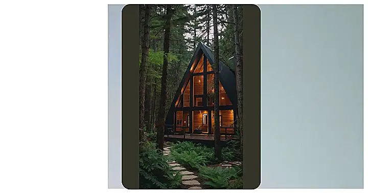 This image shows a super cool cabin nestled deep in the woods. It’s like something out of a fairytale, but with a modern twist! The cabin’s all glass and wood, and it looks so comfy and cozy inside. The lights are on, which makes it feel even more inviting. You can almost imagine yourself curled up by the fireplace with a hot cup of cocoa, watching the snow fall outside.