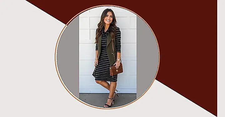 This outfit is giving us major fall vibes with its cute striped dress and trendy green vest! It’s perfect for those chilly autumn days when you want to look stylish but also stay cozy. Imagine strolling through pumpkin patches or catching up with friends at a coffee shop – this outfit is sure to turn heads!