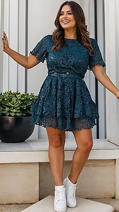 Who says you can’t be comfy and cute at the same time? This outfit proves that comfy, cute, and confident all go hand-in-hand! The lace dress is a great choice for any occasion, and it’s totally flattering on any body type. And let’s not forget those amazing white sneakers! They’re like a blank canvas for your personal style, letting you express your individuality and rock a look that’s uniquely you! So, get out there and show the world your amazing style!