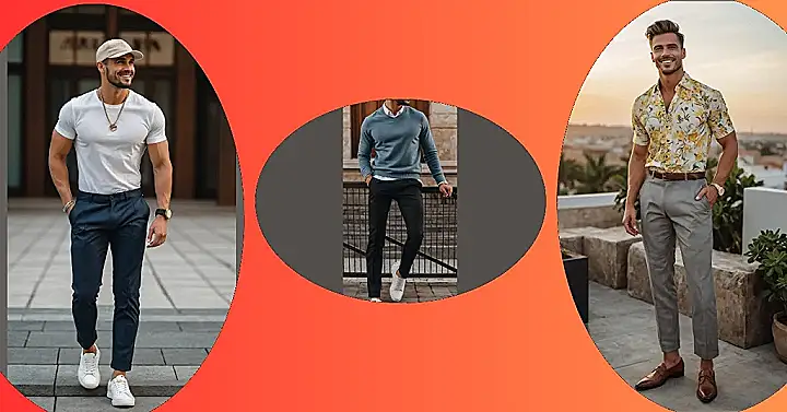 Smart casual for men is basically the superpower of looking great without looking like you tried too hard, which is a skill worth mastering. It’s the perfect outfit for those times you’re not sure if you should wear jeans or a full suit – you just meet right in the middle and look awesome. This look from the picture is spot on because it’s comfy but sharp, showing that pairing nice trousers with a simple top and sneakers is a totally valid and seriously cool move.