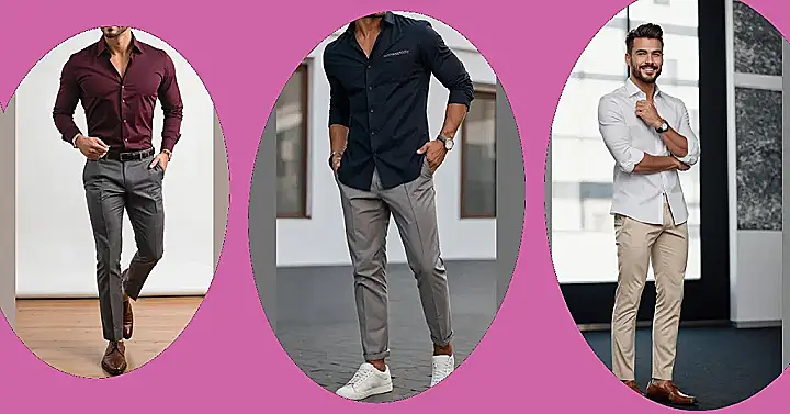 Looking sharp like the guy in this picture isn’t just for flexing at fancy events, though you totally could! Rocking a cool-colored shirt and smart pants like these is basically saying, “Yeah, I cleaned up nice.” It might feel a bit different from your usual everyday threads, maybe even a little weird, but sometimes dressing up is just part of the game – like putting on your best gear for a big match or a final boss fight, but for real life.