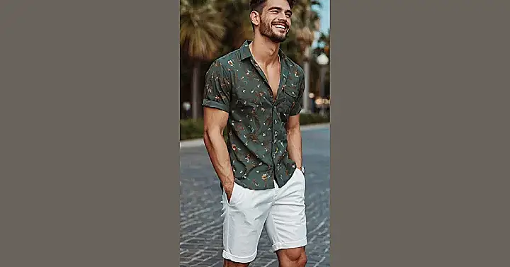 So, you’re probably thinking, “Can I actually pull this off?” Answer: Heck yes! This kind of short-sleeved button-up is super versatile. Pair it with some cool shorts like the ones in the pic, or even some jeans if you’re feeling fancy. Just remember to rock it with confidence and a killer smile, just like this guy, and you’ll be turning heads all summer long!