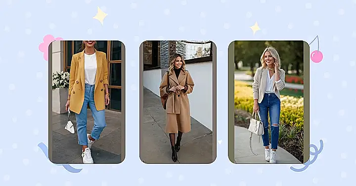 This isn’t your grandma’s beige blazer! Check out this awesome outfit – it proves that middle-aged women’s fashion is all about comfort and style rolled into one. The model’s rocking a super cute beige blazer with some seriously stylish jeans; that white side stripe is a *total* game changer. Add a chic bag and comfy white sneakers, and bam! You’ve got a look that says, “I’m cool, confident, and ready to conquer the world (or at least, happy hour).”