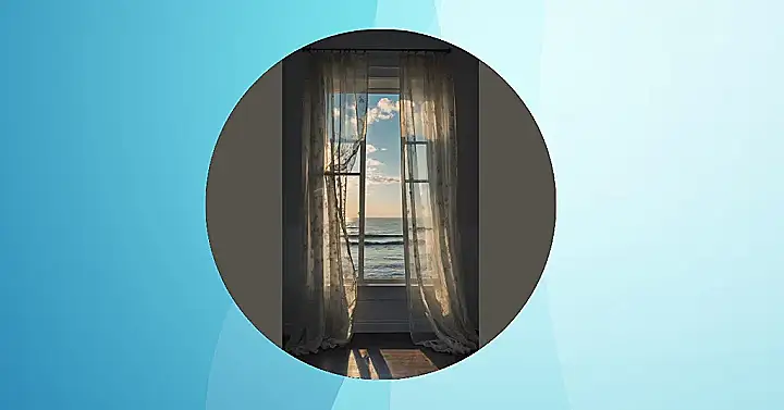 Check out those curtains! They’re having their own dramatic moment, catching the sunlight like they’re about to drop some major life advice about how to have a smooth morning. The sunbeam on the floor looks super inviting, practically begging you to forget about brushing your teeth and just stare at the pretty water instead. If mornings usually feel like a race against time, this peaceful scene is definitely the universe’s way of saying, “Hey, slow down, the ocean isn’t going anywhere.” Pity school usually is.