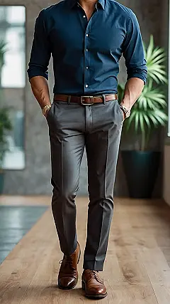 This look is all about nailing the details. From the perfectly styled hair to the matching belt and shoes, it shows you put in the effort. And guess what? People notice! Rock this outfit, and you’ll be turning heads faster than you can say “dress to impress.” Just maybe practice your confident walk first – you know, for added effect.