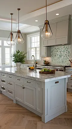 Seriously though, this “chic kitchen design” screams “I have my life together” – even if you’re just microwaving leftovers in your pajamas. It’s the kind of kitchen that makes you want to host a fancy dinner party… or at least pretend to while scrolling through Instagram. Just try not to spill anything on that expensive marble!