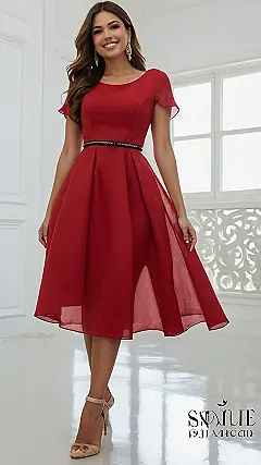 This frock is a total knockout! It’s like a red velvet cupcake, but instead of frosting, it’s got a fancy belt and a breezy skirt that twirls like a dream. You can totally imagine yourself at a fancy dinner, dancing with your friends, or even winning a school dance in this classy dress. Plus, it’s got a little bit of mystery with that see-through bottom. This frock isn’t just for any occasion, it’s for feeling like a total rockstar!