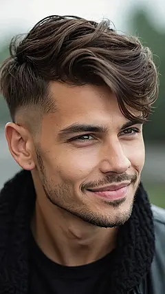 Okay, so check out this dude’s hair! It’s like a sunset but on his head. That’s the power of a fade haircut. Short on the sides, long on top – it’s the hairstyle equivalent of saying, “I’m here to look good and maybe steal your girl… or boyfriend… or both!” It’s sharp, clean, and definitely a head-turner, perfect if you’re tired of looking like you just rolled out of bed (even if you did!).