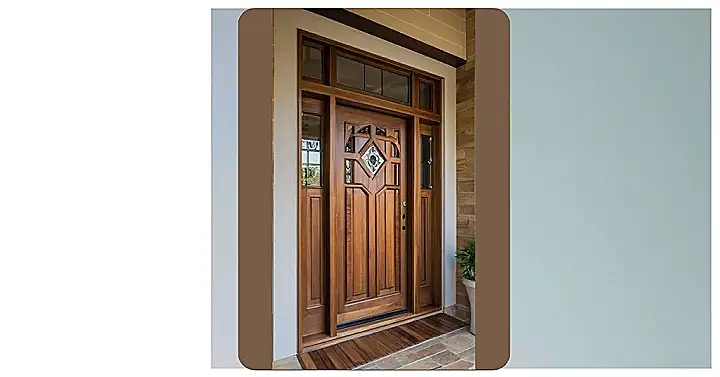 This door is so fancy; it’s like the VIP section of houses. It’s made of wood that looks so strong you could probably use it to build a fortress… or at least hide from your annoying little brother. You wouldn’t need to worry about anyone barging in uninvited; this thing’s got more style and security than a celebrity’s bodyguard!