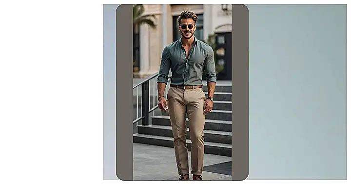 This guy looks ready to conquer the weekend! He’s rocking that effortless cool look, like he just threw on some clothes and magically became a style icon. The shades say “I’m relaxed,” but the carefully rolled-up sleeves say “I put in just enough effort to look this good.” Seriously though, who knew a simple white shirt and some stylish pants could give off such main character energy?