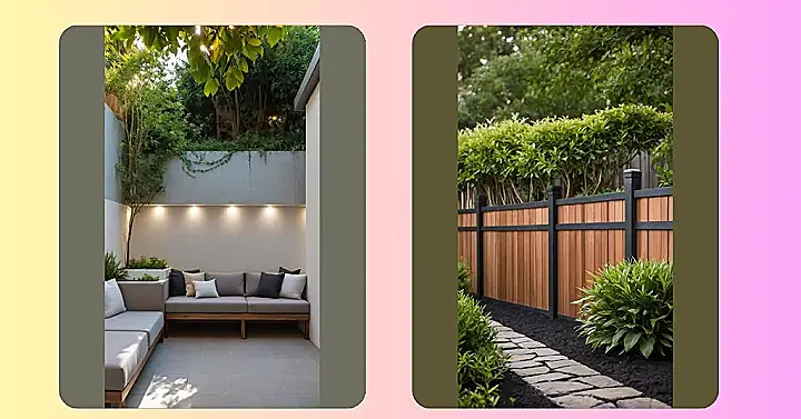 This picture shows a backyard layout so comfy it practically screams, “Put your feet up and forget homework exists!” Seriously, those couches look like cloud magnets, perfect for binge-watching shows outside (maybe not practical, but hey, dreams!) or just staring at the leaves and pretending you’re a nature expert. It’s all about how they arranged everything – seating here, plants there, shiny lights on the wall – proving that a smart backyard layout isn’t just about looking fancy, it’s about creating the ultimate hangout spot where the only drama is whether you brought enough snacks.