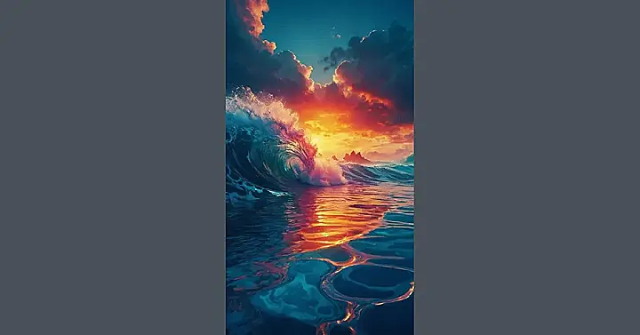 Check out this gnarly wave trying its best to photobomb your phone screen. It’s like, “Hey world, look at me! I’m a giant splash of awesome!” But honestly, isn’t it kind of adorable how all those fiery sunset colors crash into the cool blue water? This isn’t just any old splash; it’s a full-on art show happening right before your digital eyes, making your background look way cooler than just a plain old solid color.