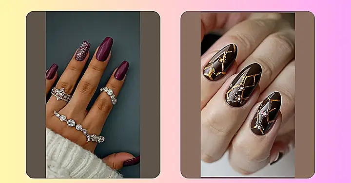 So, you’ve got a date tonight? Score! But are your nails ready to steal the show? These burgundy nails are like a super cool outfit for your hands. The deep color is totally sophisticated, and that one nail with the glittery design? Genius! It’s like saying, “Yeah, I’m classy, but I also know how to party.” Plus, that sweater looks comfy and cozy, perfect for holding hands while watching a movie.