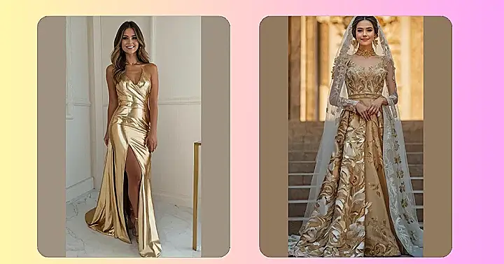 Ladies, let’s get ready to turn heads with some gold wedding dress goals! Gone are the days when brides felt they had to wear traditional white to tie the knot. Enter the sparkling world of gold wedding dresses, where you can effortlessly channel your inner divas while making a splash. Just imagine popping that champagne bottle as you make your grand entrance—bee-yoo-tiful, no?