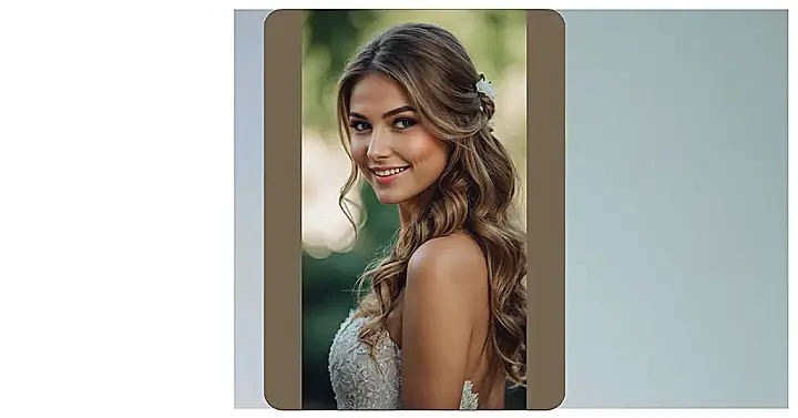 So, you’ve got a shiny new ring and a whole bunch of excited “congratulations!” headed your way. That’s awesome! But while everyone’s distracted by the bling on your finger, let’s talk about how to make sure *you* are the absolute main event. Take a peek at our model here: her hair is practically having its own red carpet moment! Those perfect waves, part up, part down, make her look like she just stepped out of a fairytale, and honestly, who wouldn’t want that kind of glow-up for their big engagement party? Her hair isn’t just sitting there; it’s a sparkling accessory itself, ready for all those camera flashes.